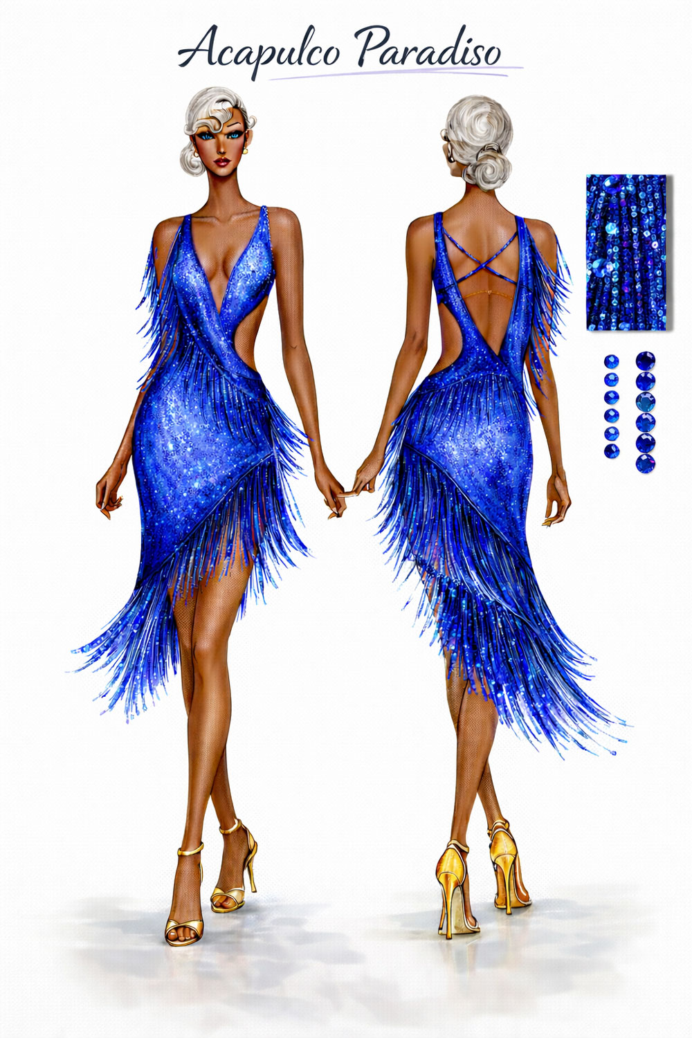 Amazing blue fringes latin dress for a lot of outstanding movement on the dancefloor. This latin gown is sewn with a bodysuit inside for the best comfort.